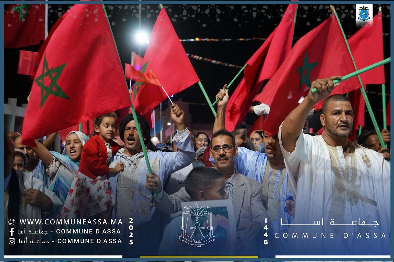 وبهذه المناسبة، جددت ساكنة جماعة أسا تأكيدها على التمسك بالوحدة الترابية للمملكة، وعلى دعمها اللامشروط لكل المبادرات والمجهودات الرامية إلى الدفاع عن القضية الوطنية الأولى، مؤمنة بأن الحكم الذاتي تحت السيادة المغربية هو الحل الواقعي والنهائي لهذا النزاع الإقليمي المفتعل.