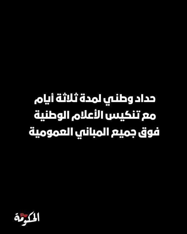 ﺣداد وطﻧﻲ ﻟﻣدة ﺛﻼﺛﺔ أﯾﺎم، ﻣﻊ ﺗﻧﻛﯾس اﻷﻋﻼم اﻟوطﻧﯾﺔ جراء الزلزال الذي شهدته عدة مناطق مغربية