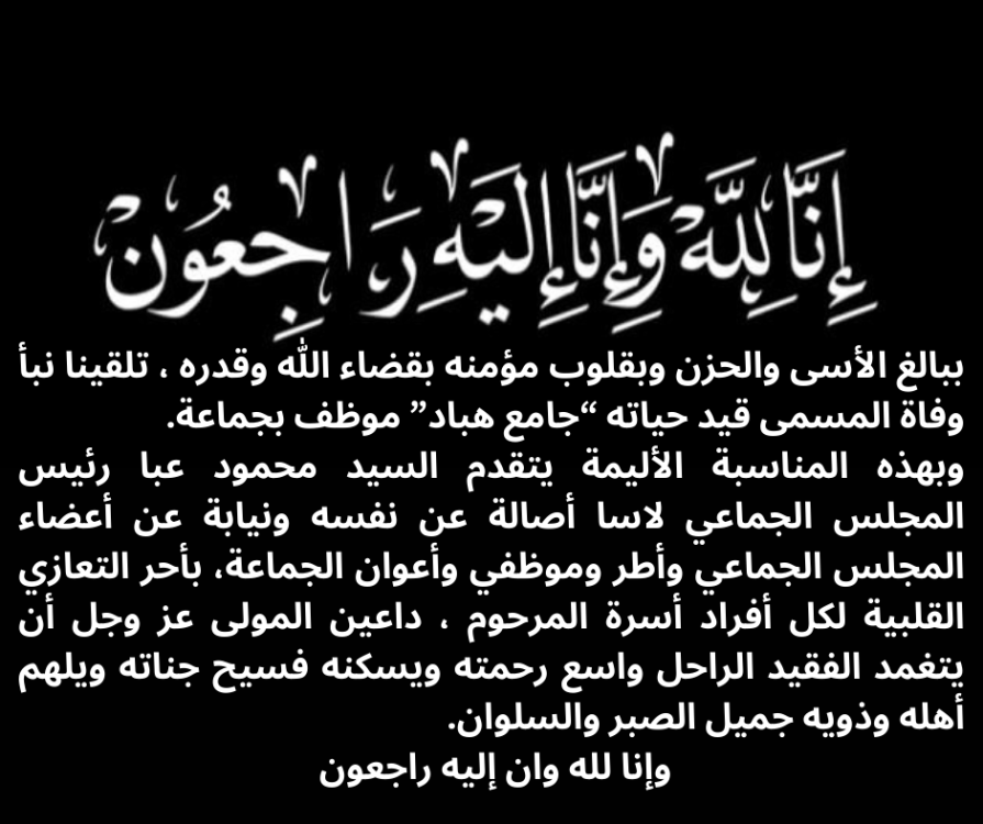 تعزية وفاة الرئيس السابق لجماعة اسا