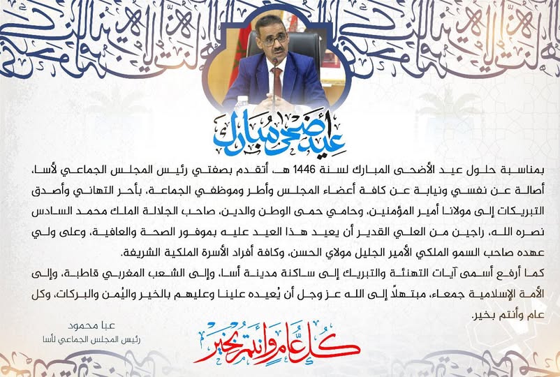 تهنئة رئيس جماعةاسا لساكنة المدينة بمناسبة عيد الأضحى المبارك