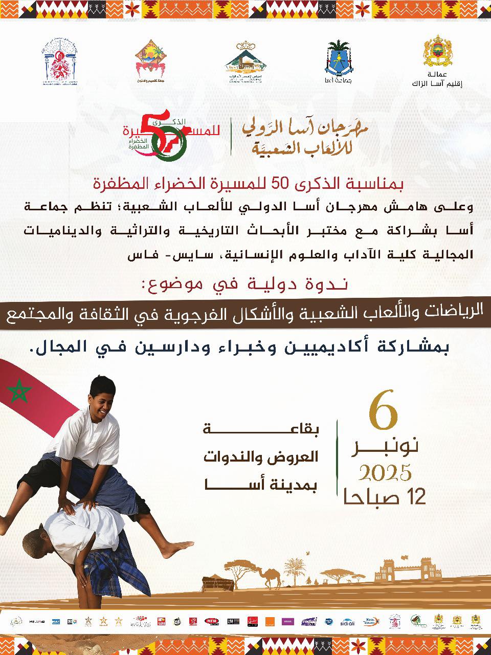 ضمن فقرات مهرجان آسا الدولي للألعاب الشعبية : ندوة دولية في موضوع : الرياضات والألعاب الشعبية والأشكال الفرجوية في الثقافة والمجتمع