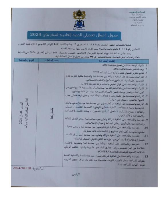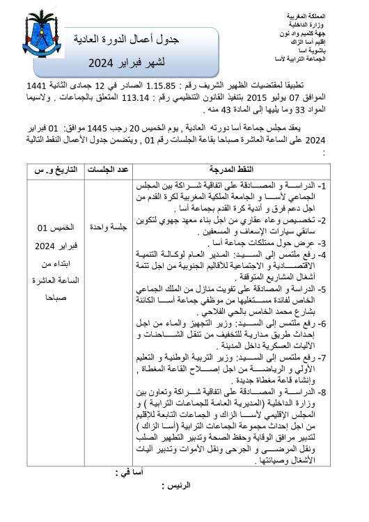 جدول اعمال الدورة الاستثنائية لشهر فبراير 2024