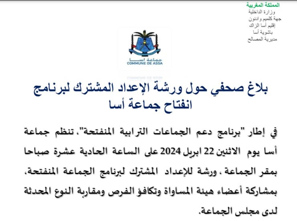 ورشة الإعداد المشترك لبرنامج انفتاح جماعة أسا