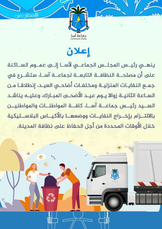 اعلان لجمع النفايات المنزلية ومخلفات اضاحي العيد