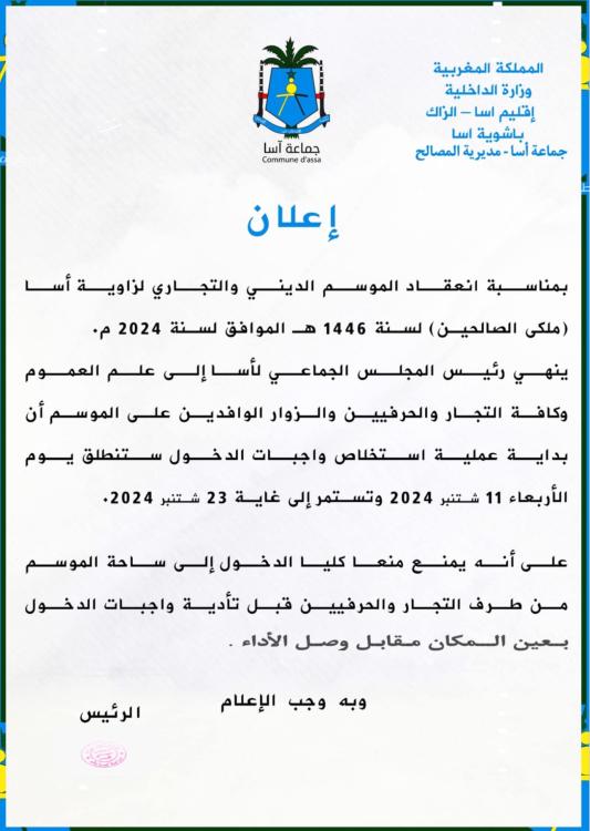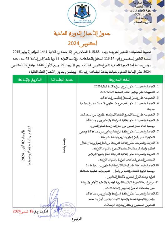 اعلان للعموم الدورة العادية اكتوبر 2024