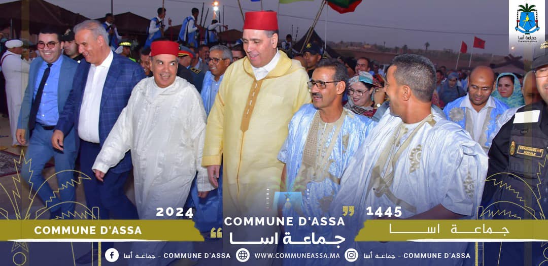 حضور السيد عبا محمود رئيس المجلس الجماعي لأسا و النائب البرلماني لافتتاح فعاليات الموسم الديني و التجاري و الثقافي لزاوية آسا ملگى الصالحين لسنة 2024 ميلادية الموافق ل 1446 هـ ، و ذلك بحضور والي جهة كلميم وادنون ، و عامل إقليم اسا الزاك ، و الوفد المرافق لهما