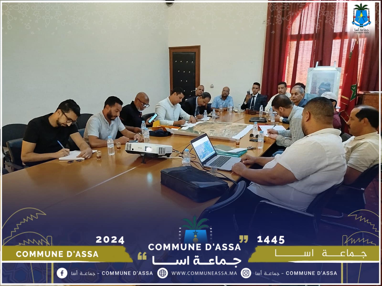 انعقد اليوم بمقر جماعة اسا اجتماع تنسيقي بحضور النائب الرابع لرئيس المجلس و رئيس لجنة التعمير وإعداد التراب والبيئة وكذا رئيس لجنة الشؤون المالية والاقتصادية ومدير المصالح للجماعة وبحضور السلطة المحلية ، ومصالح عمالة اسا الزاك ، المديرية الجهوية للفلاحة لجهة كلميم وادنون' الوكالة الوطنية لتنمية مناطق الواحات وشجر ألاركان، المديرية الجهوية للاستشارة الفلاحية بجهة كلميم وادنون والمديرية الإقليمية للوقاية المدنية ومكتب الدراسات المكلف.